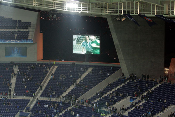 С верхнего яруса, на котором расположены пресс-ложи, очень хорошо видны все перипетии игры, убеждаюсь в этом не в первый раз, хотя и обладаю слабым и все ухудшающимся зрением. Все как на ладони. Правда, в драконий скелет стадионной крыши легко проникает ветерок и под конец игры было очень прохладно. Беда была в том, что куртка пошла выполнять более важную миссию, в нее был замотан портвейн. Пришлось мерзнуть, зато в Борисполе выяснилось, что ничто не разбито. А это удалось далеко не всем моим коллегам.